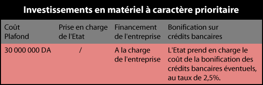 | Investissements en matériel à caractère prioritaire