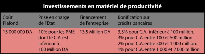 | Investissements en matériel de productivité